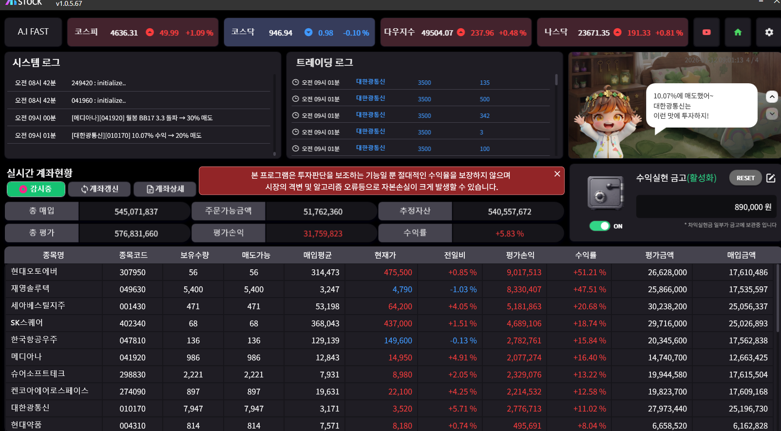 FAST의 계좌 속 요정은 차익 실현의 빵빠레를 울렸다.