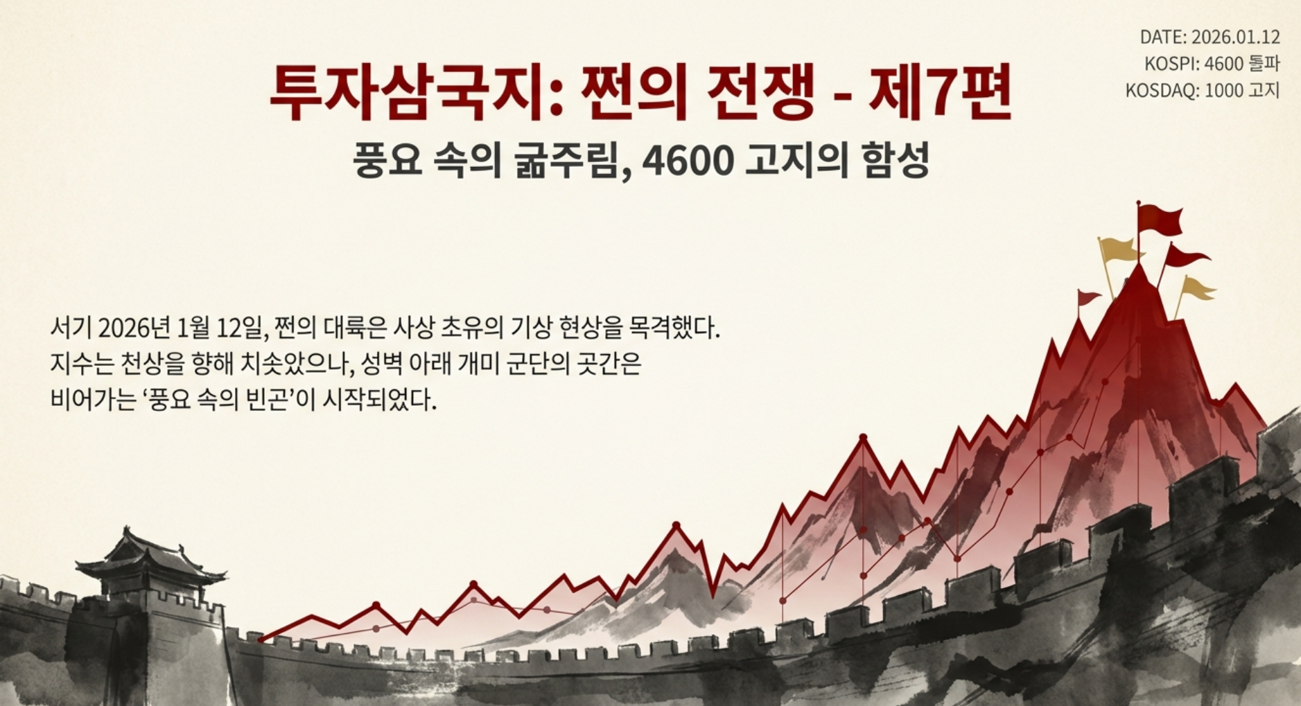 서기 2026년 1월 12일. 쩐의 전쟁이 발발한 지 열흘째 되는 날, 대륙(주식시장)은 기묘한 광기에 휩싸여 있었다.
