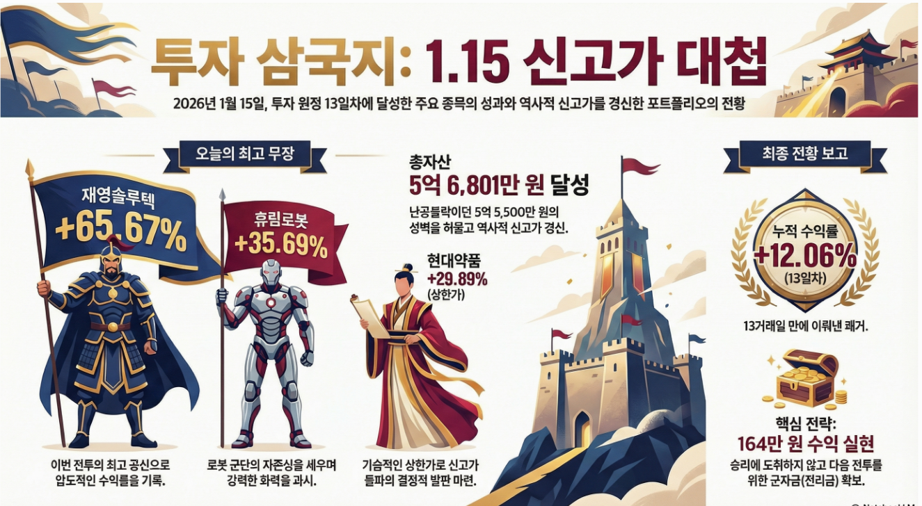 투자삼국지-쩐의전쟁 8편 13거래일만에 현대약품상한가. 휴림로봇 ,재영솔리텍 ! 영토를 장악하다 !