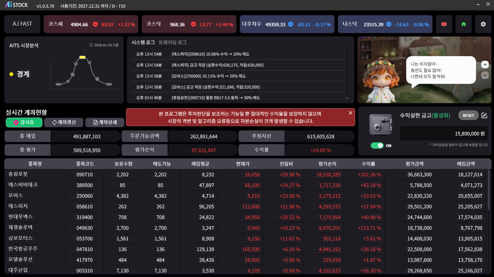 AITS 사람이면 망설자리에거 과감하게 매수하여 단3~4분만에 두번매도하여 수익챙기고 나머지 가져가면서 수익률을 올려가는데 정말 무섭고 소름 돋을정도입니다 쳐다보면서 와 소리밖에 안나옵니다. 감사합니다.