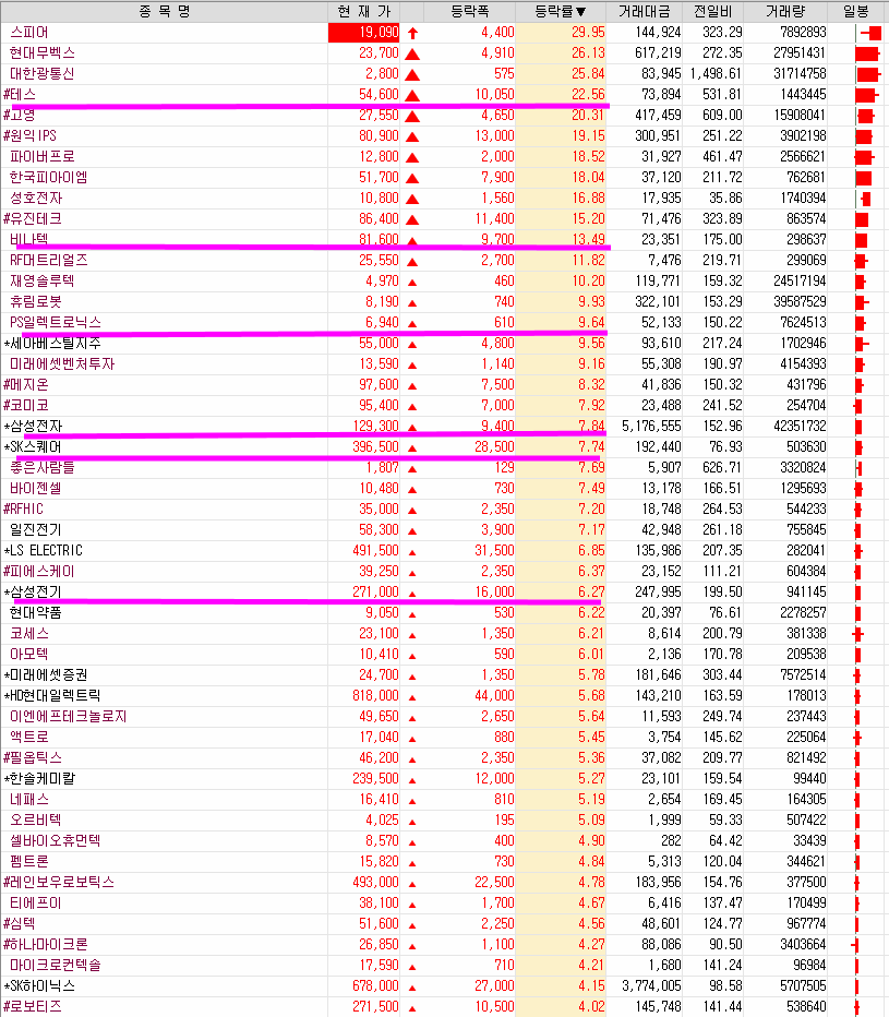 쎄트렉아이와 스피어 상한가를 선봉장으로