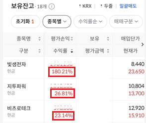 캡쳐에는 없지만100% 넘은 종목들도 꽤 있었는데 그걸 기록 못 해둔 게 제일 아쉽습니다ㅠㅠ