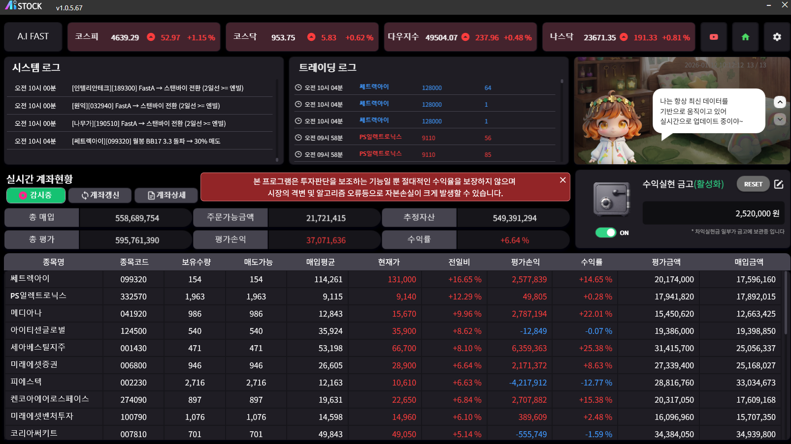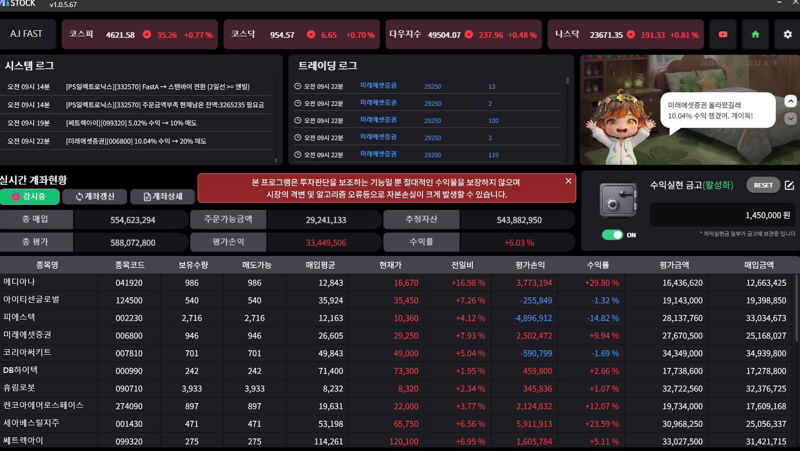 FAST의 계좌 속 요정은 차익 실현의 빵빠레를 울렸다.