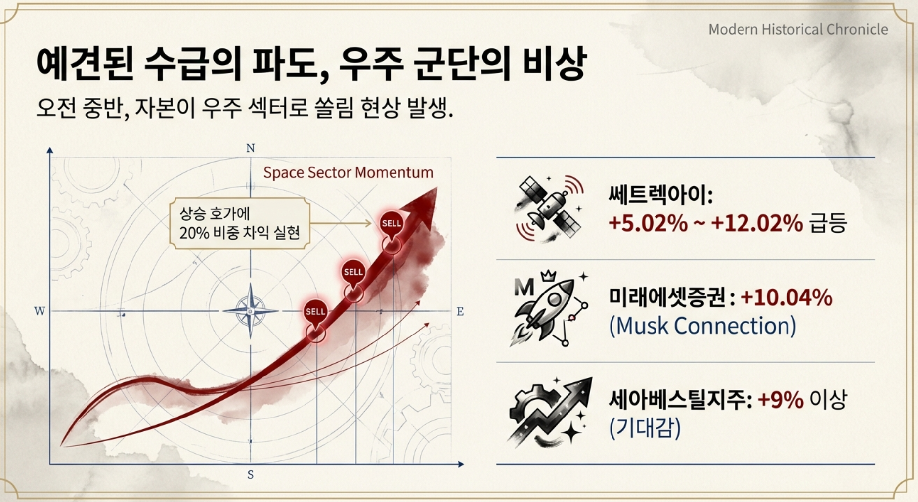 오전 중반. FAST의 예측대로 수급의 바람이 우주 섹터로 몰아치기 시작했다.