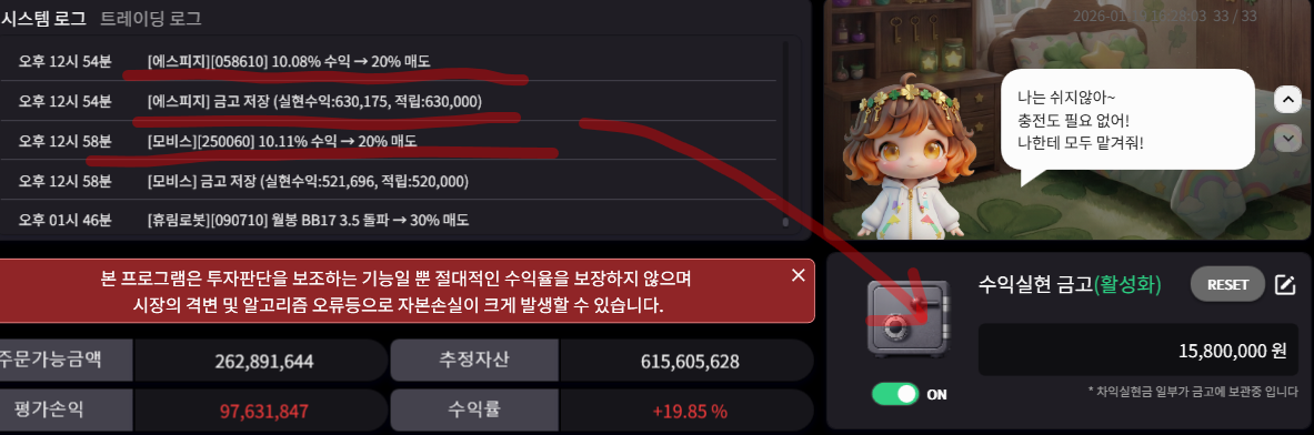 보유하던 에스피지. 모비스 급등시 일부 차익실현하여 수익실현 금고에 슝 !!