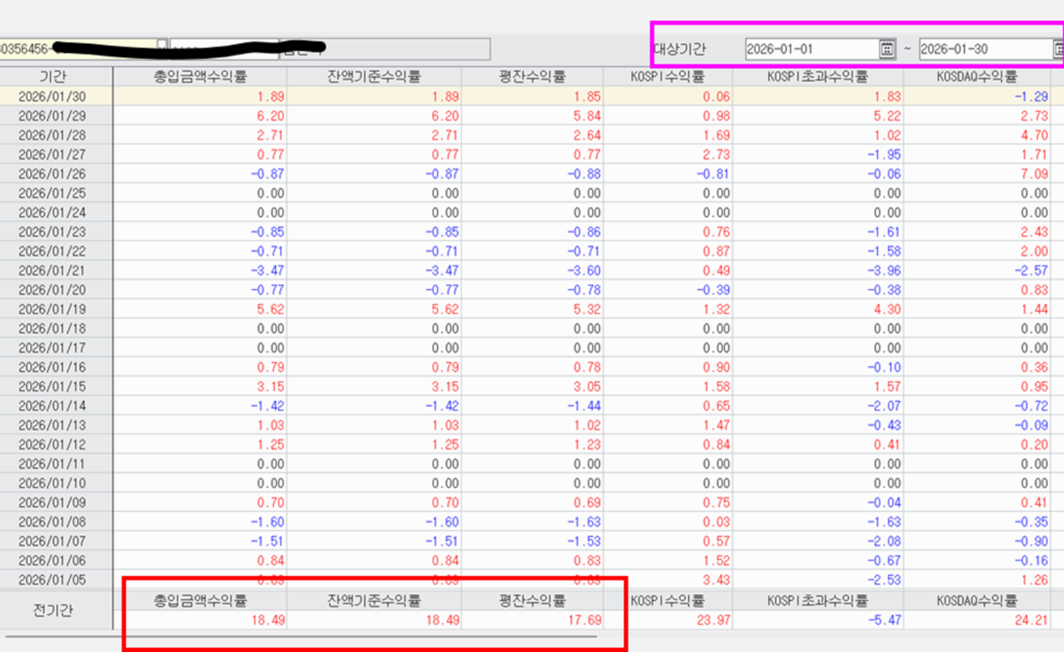 2026년 1월 / 한달간 계좌 수익율 18.49%