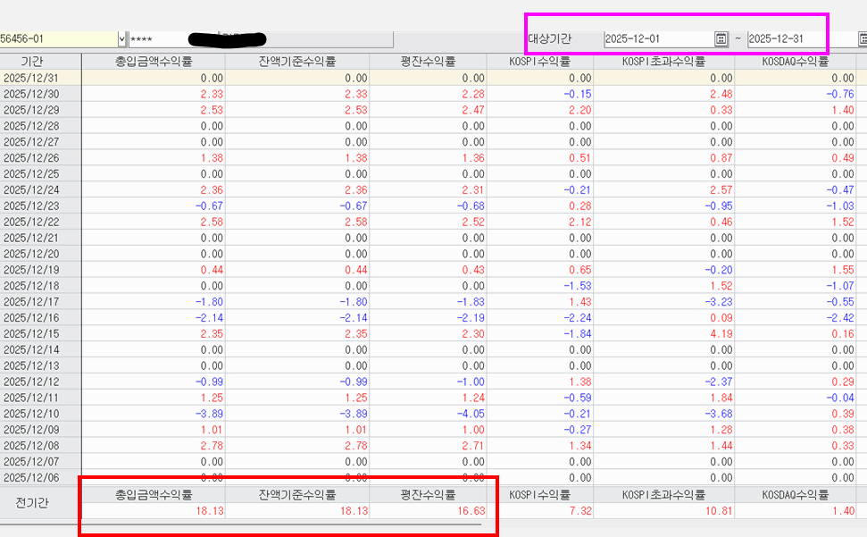 2025년 12월 / 한달간 계좌 수익율 18.13%