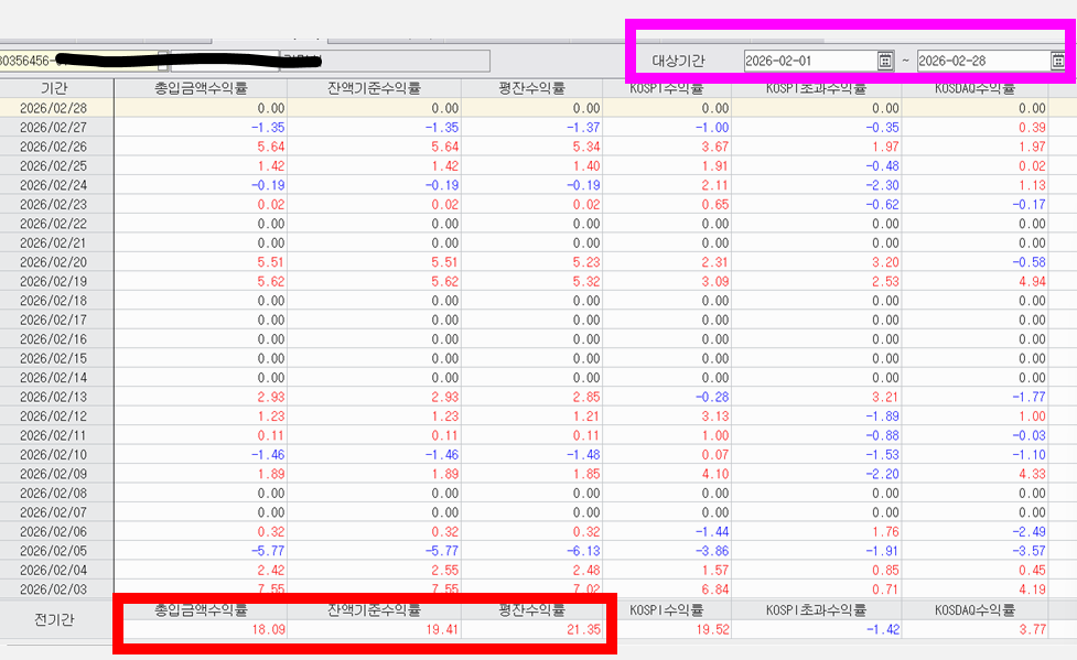 2026년 2월 / 한달간 수익율 18.09%